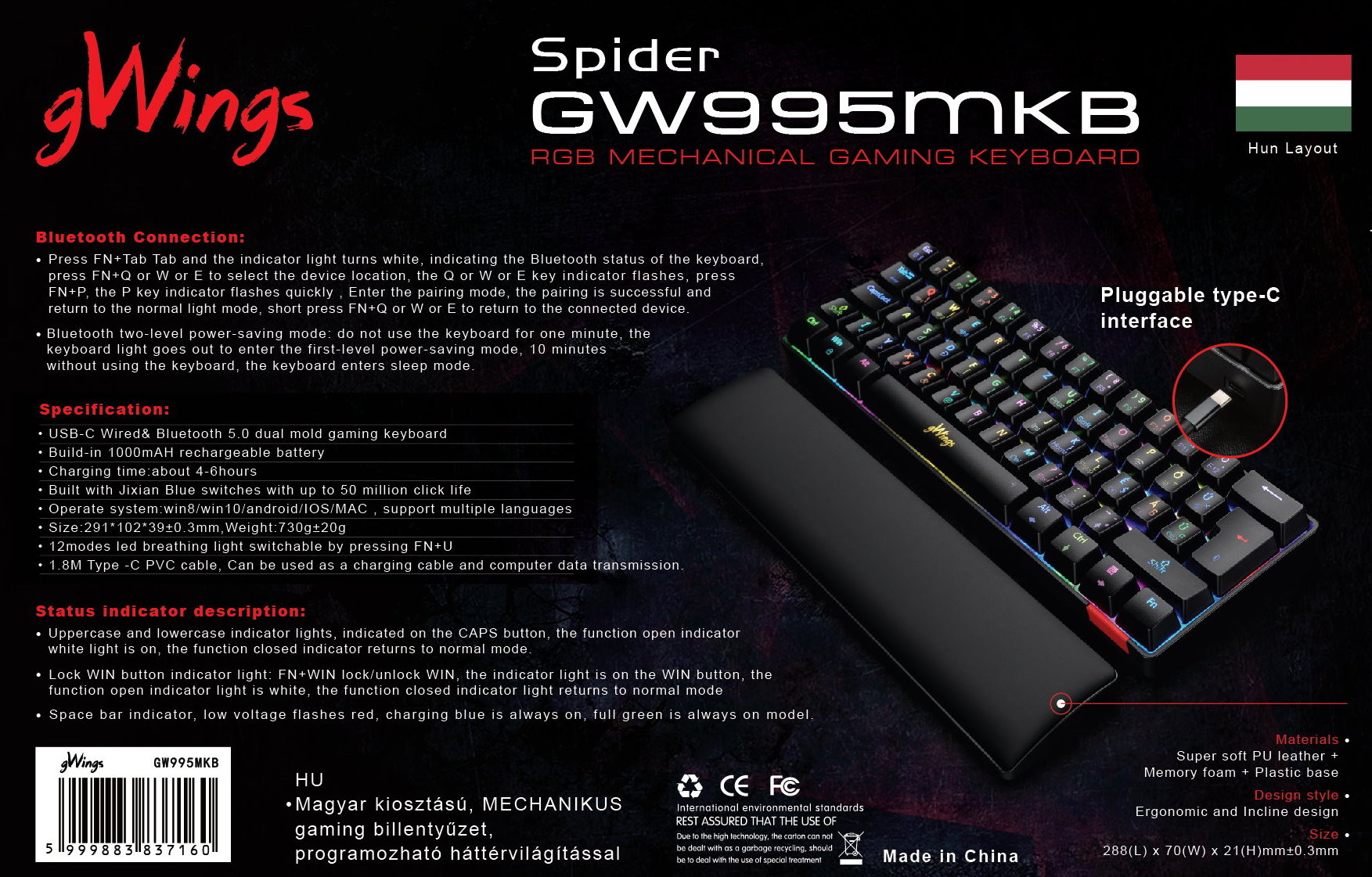 Első ránézésre a GW995MKB egy „kompakt”-, vezetékes-, gaming billentyűzet, az elengedhetetlen mechanikus billentyű-készletével és programozható háttérvilágításával.