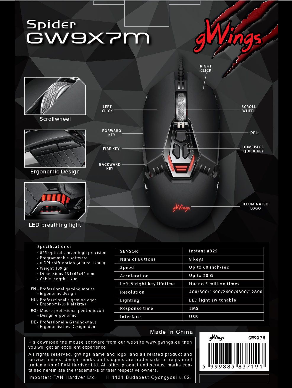 Aki azt szereti, hogy a gaming egere karcsú legyen és jó sok gombbal legyen felszerelve az ne lapozzon tovább, csapjon le a gWings GW9x7m egérkére.